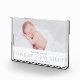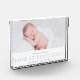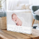 El sencillo y moderno bloque de foto para bebés muestra tu foto favorita horizontal o paisajista para recién nacidos, con una banda blanca a lo largo de la parte inferior que dice "amor a primera vista" en gris claro, flanqueada por el nombre y las estadísticas de nacimiento de tu pequeña. Un diseño moderno y minimalista neutral de género que hace un regalo perfecto para los nuevos padres.