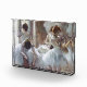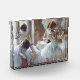 Bailarines Edgar Degas. Retrato bonito en tonos marrón blanco pastel. Ballerinas con faldas blancas van a clase. Los chicas enderezan sus vestidos. Reproducción de obras famosas de imágenes artísticas de dominio público.