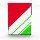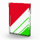 Este diseño deportivo presenta tres franjas paralelas de ancho blanco diferentes, diagonales y rojas brillantes y verdes de cal vívida.