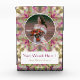 Regalo de boda personalizado con foto en bloque verde rosa púrpura melocotón estrella. Personalice esto agregando su propia foto y palabras. Un patrón geométrico moderno de explosión de estrella en colores cálidos rosa, púrpura suave y verde oliva suave rodea la foto de la novia, el novio o la feliz pareja. Un regalo personalizado de decoración femenina y dopamina para mostrar en su caprichosa sala de estar, dormitorio boho o ecléctico estudio en casa. Celebre el mejor día de su vida capturando sus queridos recuerdos felices de la familia con este recuerdo. Hace un gran regalo para un aniversario o para los padres de los recién casados también.