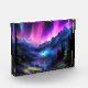 Dé un paseo por este bosque encantado en una noche nublada bajo las estrellas centelleantes y bailarinas Aurora Borealis, también conocida como las Luces del Norte. Las laderas están tapadas con el resplandor de los halos que caen debajo de ellas por las lámparas de aceite de estilo antiguo que bordean los caminos que serpentean por las colinas. El interminable resplandor del cielo y las lámparas de petróleo se están estrellando reflexivamente en los caminos que siguen húmedos de la lluvia matutina.
