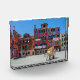 Pintura de la plaza de Venecia. Carro con cajas en medio de la antigua plaza italiana con edificios coloridos en Venecia, Italia. Servicio postal de entrega en Italia