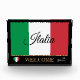 Bloque fotográfico: Bandera italiana e Italia "Bienvenida" bloque fotográfico para la entrada, área de reunión, mesa de oficina - amor a mi país, viajes, vacaciones, patriotas nacionales / hinchas deportivos