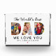 ¡Crea un regalo elegante y memorable para "El mejor del mundo" papá este Día del Padre o cualquier día! Este bloque de fotos de la mesa personalizado presenta un collage de tres fotos familiares favoritas de los niños diseñadas como un diseño moderno y audaz de tipografía sans serif. Personalice el texto personalizado con los nombres de los niños y modifique el texto negro, el corazón rojo y el fondo blanco si desea que los colores se coordinen con la decoración de su hogar.