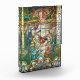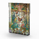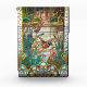 Una imagen de una vidriera con vistas a los patos de mallard en un estanque con colgaduras e iris.
