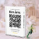 Sencillamente, deja una revisión del código QR Bloque de fotos de medios sociales personalizado. Un signo comercial con el código QR personalizado. El código QR del signo permite a los clientes dejar una revisión en la página que puede agregar. Los negros y los blancos sencillos nos dejan un Rótulo de revisión.