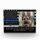 Honra a tu mejor compañera y mejor amiga con esta delgada placa de foto conmemorativa de perros de la Línea Azul para honrar a los oficiales de K9. Personalice la foto de su oficial de K9, su nombre, la fecha de fin de reloj . Cita: "Entonces oí la voz del señor que decía: "¿A quién enviaré? ¿Y quién irá por nosotros? Y dije, aquí estoy, envíenme!." Isaiah 6:8 - DERECHOS RESERVADOS © 2020 Judy Burrows, Black Dog Art - Todos los derechos reservados. Oficial delgado de la Línea Azul Policía Perro K9 Bloqueo de fotos conmemorativas
