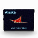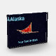 Háganles saber lo que hacen para divertirse en invierno. Un trineo de perro superpuesto en un fondo estrellado. El texto que dice "Canadá" aparece en azul brillante. Puede añadir su propio texto adicional tanto en el bolso como en la parte inferior.
