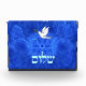 El "shalom" (paz hebrea) y la paloma con un poco de rama de olivo en el pico sobre un agradable fondo fractal azul y blanco que recuerda a las alas de los pájaros.