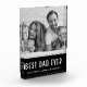 Este diseño moderno y simple dice al "mejor papá nunca" en el texto blanco de la apariencia vintage en una frontera negra mínima del marco, con un punto para añadir el nombre de su padre y una foto de familia.