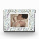 Elegante Bloque fotográfico de color verde de agua con el nombre de su bebé, año de nacimiento y un contorno del corazón en un elegante tipo de letra serif con un suave color gris. Tu foto de mamá y bebé está enmarcada con un delicado overlay blanco semi-transparente.