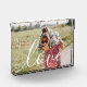 Un elegante conservador de fotos con caligrafía elegante enmarcada en un hermoso tipo de letra de escritura blanca con la palabra amor. Personaliza tu foto para hacer un regalo memorable. Diseñado por Thisisnotme©