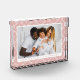 Muestra tus recuerdos de vacaciones con este elegante bloque de fotos de Navidades nórdicos de copos de nieve. Tu foto horizontal está enmarcada en blanco y se coloca sobre un fondo nórdico de copos de nieve rosa y blanco. Personalice con su saludo festivo y su apellido en la coordinación de las letras rosas. Un elegante toque de temporada que hace un maravilloso regalo de vacaciones para amigos y familiares.