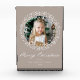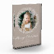 Crea un hermoso toque vacacional con el bloque de fotos de nuestros Navidades con tu foto rodeada por una corona de copos blancos de nieve y ramas de pino sobre un fondo liviano de color mocha. "Feliz Navidad" se muestra en un guión en negrita de caligrafía blanca con tu nombre y el año que se muestra a continuación.