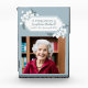 Delicadas flores blancas decoran este sencillo edificio conmemorativo azul gris. En la memoria amorosa del nombre personalizado de su ser querido y fechas entre las hermosas flores del cerezo. Este cartel conmemorativo de bonito a la vieja usanza muestra una fotografía completa de su pariente. Perfecto para un funeral o celebración de la vida.