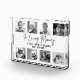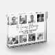 En el amor por la memoria boda en bloque acrílico conmemorativo con un collage de 8 fotos en blanco y negro (una opción de color está disponible en la tienda). En el ejemplo se lee "de esos para siempre en nuestros corazones hoy y siempre". Diseño de caligrafía blanca para la recepción o la ceremonia.