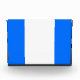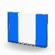 Este diseño deportivo presenta una amplia franja vertical blanca central contra las coloridas franjas exteriores azules.