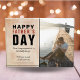 Bloqueo de fotos de la familia de acuarela del mensaje del Día del Padre Feliz. El texto y los nombres se encuentran en un fondo de color de agua de naranja ondulado. Añade tu foto y personalizar el mensaje y los nombres. Una preciosa placa fotográfica para un padre o un abuelo para el día o cumpleaños del padre.