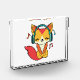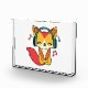 Bloque Para Fotos Feliz zorro con auriculares escuchando música.