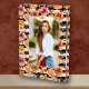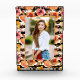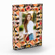 Flores de otoño sobre rayas blancas y negras salpicadas con patrones de puntos dorados resaltan tu foto favorita en este bloque de fotos acrílicas. Ideal como regalo o para mostrar tu foto favorita en tu propia casa.