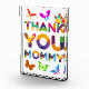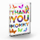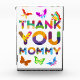 Gracias mamá, imagen de texto decorativa contra el fondo blanco. Seis mariposas coloridas flotan alrededor de la imagen o se sientan en una carta. Un bloque de fotos de personalizable para decorar tu lugar y +celebrar el Día de la Madre, cumpleaños o cualquier otra ocasión. Puedes cambiar las mariposas y colocar algunas fotos en lugar de ellas. Por favor, utilice el botón "Personalizar" para cambiar el tamaño de la imagen de texto, para reubicar mariposas o para cambiar el color del fondo. ¡Diviértete, personalizar y cómprate uno, y sé feliz!
