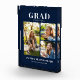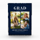 Graduación de Collage de fotos Grad 3 de fondo azul marino te permite fácilmente personalizar y añadir tu foto, nombre, clase y nombre de la universidad. Con texto blanco sobre fondo azul marino con tipografía moderna popular.