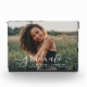 Celebra tu graduación con esta elegante placa de bloques de fotos. Presenta una foto preferida de un retrato senior con un diseño moderno y minimalista elegante de escritura "graduado" superpuesto y monograma que se puede personalizar con el nombre del graduado, el año de clase y la escuela. Hace un hermoso recuerdo para mostrar en tu casa.