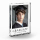 Bloque de fotos de graduación con el texto "Graduado" en un elegante tipo de letra serif con el año y el nombre de la escuela en un fondo de color blanco o personalizado.