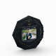Este bloque de fotos de graduación de la escuela de derecho personalizado de moda presenta un diseño hexagonal geométrico de oro con escalas de justicia colocadas encima de una foto del graduado. Moderno y elegante regalo fotográfico para un nuevo abogado graduándose con la clase de 2025.