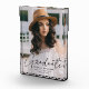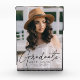 Celebra el logro de tu graduación con una foto de personalizado. El bloque de fotos muestra la foto vertical del graduado con "graduado" mostrado en un guión negro de moda. Personalice el moderno bloque de fotos de graduación agregando el nombre del graduado, la escuela y el año de graduación.
