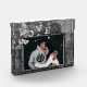 Una plantilla de fotos contemporánea moderna inspirada en el graffiti en forma de tablón de papel con un grafiti mixto de pizarra con tipografía mística del guión de "Amor" brillante de diamante en una paleta monocroma mínima de gris negro, blanco y plateado. Para personalizaciones, coordinación de productos u otros colores, por favor visite JustFharryn @ Zazzle.com #zazzlemade
