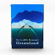 Ballenas con lanzas. Una imagen tradicional al estilo de un afiche de viaje de dos narguiles macho "colmiando", cruzando sus colmillos, con hielo marino y el continente de Groenlandia en el fondo. También aparece el texto "Groenlandia" y "Kalaallit Nunaat" (Groenlandia en groenlandés). Se desconoce el propósito del colmillo, una actividad común durante las partes más cálidas del año. Puede ser un saludo amistoso o una forma de eliminar piojos que infesten la base del colmillo. Ni siquiera se conoce con certeza el propósito final del colmillo en espiral. Puede servir para atraer a un compañero con el mismo propósito que las cuerdas de ciervo y alce, las plumas de cola del pavo real, o un macho de león. Algunos investigadores creen que puede servir como órgano sensorial. Tal vez sirva a más de un propósito.