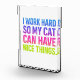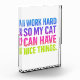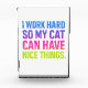 A bright, bold, and hilarious statement design for the dedicated cat parent! This quote, "I work hard so my cat can have nice things," perfectly captures the financial reality of loving a pampered feline. Featuring a vibrant, neon color gradient—cool blues blending into hot pinks and bright neon green—this design is a funny and relatable gift for cat owners, pet lovers, and anyone who sacrifices their paycheck for their beloved kitty's luxury.