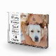 Celebra a tu mejor amigo con un personalizado único mascota de fotos y conservas. Este bloque de fotos de perros es el regalo perfecto para usted, familia o amigos para honrar a los seres queridos. Esperamos que el memorial fotográfico de su mascota le traiga alegría, paz y recuerdos felices. Cita " Tu vida fue una Bendición , tu memoria un tesoro, eres Amado más allá de las palabras, Perdido más allá de medida " Ver ‘personalizar esta plantilla' para cambiar foto y nombre. DERECHOS RESERVADOS © 2020 Judy Burrows, Black Dog Art - Todos los derechos reservados. Memoria Mascota personalizada Bloque de fotos de perros conmemorativos modernos