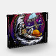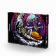 Arte vectorial original de un astronauta que tiene queso de luna y pasa una tajada a un alien. Creado en vector.