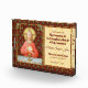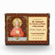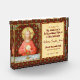 Para los Ministros Extraordinarios de la Eucaristía (EMHC) + En esta espléndida imagen, Jesús se sienta en una mesa que está puesta para la Pascua y cubierta con un paño de manteca azul y blanco. Él está vestido con una ropa roja que atrae a la vista. Es Jueves Santo o Maundy y su última cena con sus apóstoles. Es el momento en que instituye el sacramento de la Santa Comunión o la Eucaristía. + La figura de Jesús está aislada en un fondo rojo oscuro con estampados estilizados en formas diamantíferas. El ánimo aquí es solemne. Levantando sus ojos al cielo, Jesús levanta su mano derecha en bendición. A su izquierda sostiene a un gran anfitrión, el pan eucarístico, sobre el cáliz lleno de vino. En latín —en un banderol debajo de la escena— están las palabras de consagración: "Este es mi cuerpo... esta es mi sangre" ("el cuerpo más especial del cuerpo... Hic est sanguis meus"). En recuerdo de Él, en cada misa, el sacerdote retoma esta acción sagrada convirtiendo el pan y el vino ordinarios en el cuerpo y la sangre de Cristo. + Crédito de la imagen (SAU 045): Impresión devocional antigua de Jesús Instituyendo la Eucaristía Sagrada, publicada originalmente en cromolitografía por la Socièté de St. Augustin, Brujas, Bélgica, a finales del siglo XIX, de la colección privada de ephemera religiosa del diseñador.