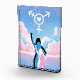 Siluetas femeninas están debajo de un cielo de algodón de azúcar con un símbolo transgénero blanco en el cielo como la señal de murciélago, tiene un corazón en el medio.