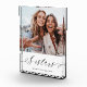 Un regalo fotográfico especial y memorable para las hermanas. El diseño incluye un diseño fotográfico único para mostrar la foto de tu hermana especial. "Hermanas" está diseñado en una caligrafía elegante de escritura de pincel negro y personalizado con nombres de hermanas. Envíe un regalo memorable y especial a usted y a su hermana que ambos apreciarán para siempre. Nota los colores se pueden cambiar según tus preferencias.