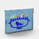 Cuenta con una menorah de Chanukkah de temática azul y león con las ocho velas y la quema de shamash. Chanukkah es el "Festival de las Luces" de mediados de invierno.