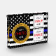 Bloque fotográfico de vidrio: Línea Azul delgada y Bandera Americana (Estados Unidos) - aplicación de la ley / temática policial - amar mi país, patriotas / hinchas deportivos