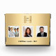 Un falso fondo dorado. Personalice y agregue el logotipo de negocios, 3 fotos y un texto al frente. Texto negro.