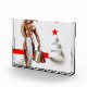 Navidades de SlipperyJoe comprando un árbol de espirales de papel blanco coronado por una vibrante estrella roja que golpea el tema de las vacaciones atrevida banda de escarlata corriendo horizontalmente sexy hombre muscular de pecho parcialmente vestido hoja de cama artística sin camisa regalo de tipo bolsos de compras estacionales regalos de orgullo gay alegrías LGBTQIA