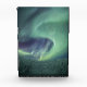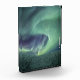 Foto natural de las muy fuertes luces verdes y violetas del norte (Aurora borealis) en el cielo nocturno ártico del norte de Noruega, Escandinavia. El bosque en primer plano está completamente cubierto de nieve profunda. Ubicación de la foto: cerca de la frontera con Finlandia entre Tromso y Kilpisjärvi.
