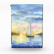 Mar al atardecer. Un bonito yate sale de la bahía y va al mar. El ilustracion acuarela fue dibujado y escaneado. Paisaje acuático hecho al aire libre en 2024.