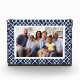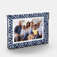 Muestra una foto familiar favorita en estilo elegante con nuestro bloque acrílico independiente de moda. El diseño presenta su foto horizontal o vertical enmarcada por un patrón de entramado de bambú en azul marino clásico y blanco.