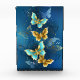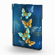 Composición de vuelo, joyería, oro y mariposas oscuras sobre fondo de joyería texturada. Mariposa dorada.