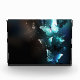 Mariposas brillantes nocturnas de menta sobre fondo abstracto negro.