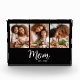 Being a mom is one of the most important jobs in the world. Show your favorite mom that you care with this custom 3 photo block. Simple white script calligraphy and sans serif typography, along with your 3 personalized photos, overlay a black background. Personalize with the photos of your choice and the mom “established” year date when your first child was born. Add additional years for each child. And switch out “mom”, if desired, for however you call your mom or mum. Makes a great keepsake gift!