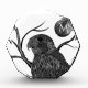 Obra de arte en blanco y negro de un halcón peregrino con ramas de árbol y luna llena. Utilice la plantilla de texto para agregar un primer o un monograma a la luna. ♡ Idyllfire