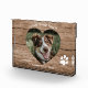 Honra la memoria de tu amigo de cuatro patas con este Personalizado Dog Memorial, para siempre en nuestros corazones, Rustic Wood con un corte en forma de corazón. Listo para que añada su propia foto y nombre de mascotas a.Si necesita cambiar el tamaño o mover su foto, haga clic en personalizar más al final de la plantilla.